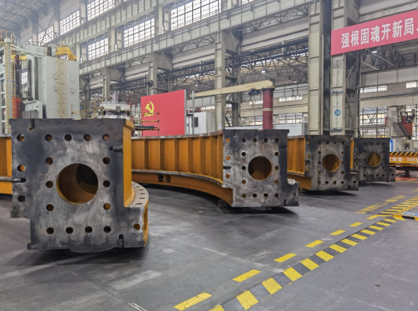 焊花飞溅,一道道完美的焊缝呈现在被加工的导水机构上;吊臂穿梭,一个个巨型水轮机零部件被拎起放下……1月4日,室外温度逼近冰点,但pa旗舰厅官网电机公司有着“中华第一跨”之称的重跨车间内,一片火热。