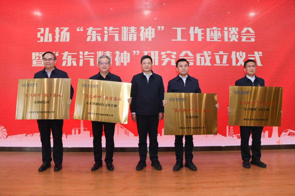俞培根向东电印迹、“东汽精神”文化长廊、东锅跡忆园、东重环湖同行文化长廊等四个“东汽精神”教育基地授牌。