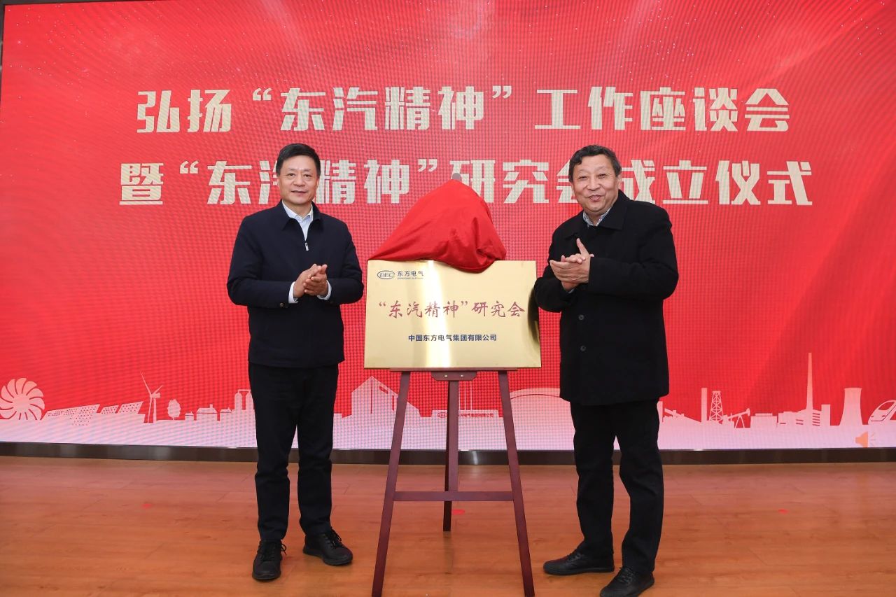 俞培根和王计共同为“东汽精神”研究会揭牌。