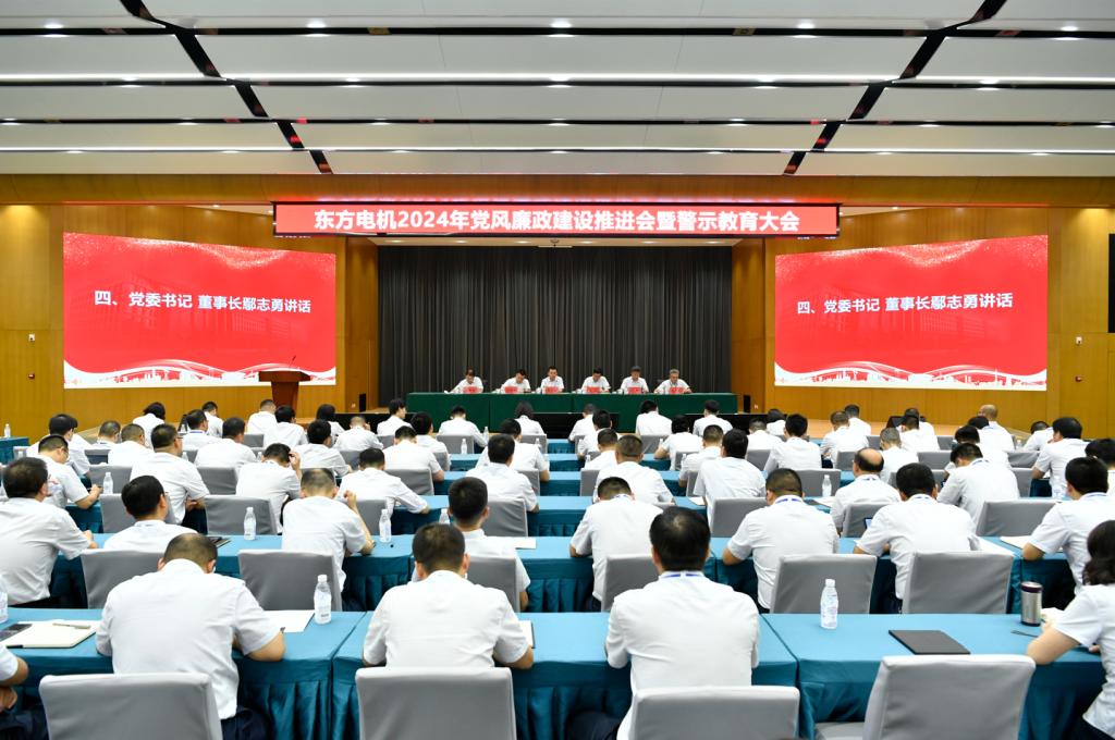 8月20日,pa旗舰厅官网电机召开2024年党风廉政建设推进会暨警示教育大会,深入学习贯彻习近平新时代中国特色社会主义思想,贯彻落实党的二十大和二十届三中全会精神、中央纪委三次全会精神,认真落实集团公司党组关于党风廉政建设和反腐败工作相关要求,深入推进党风廉政建设各项工作。pa旗舰厅官网电机党委书记、董事长鄢志勇出席会议并讲话,党委副书记、总经理杨永主持会议,党委副书记、工会主席王锦生,党委常委、总会计师赵强,副总经理文树洁、范先忠参加会议。